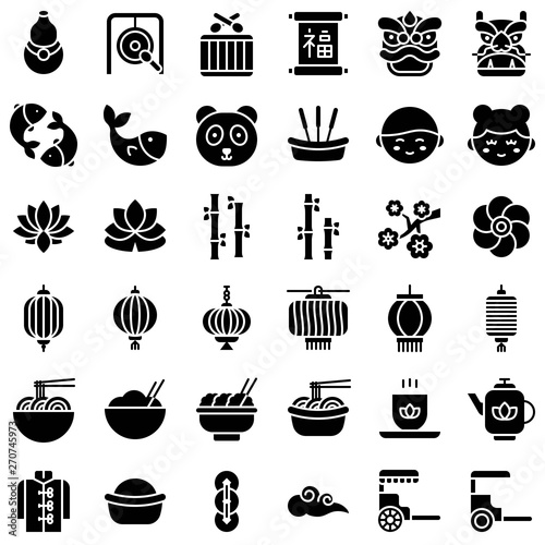Chinese lunar new year vetor icon set, solid style