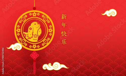 Chinese New Year (Year of the Dog) vector illustration. Paper cut dog emblem with copy space. ( Chinese Translation: Happy New Year )