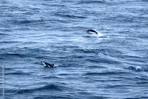 Chinstrap penguins (Pygoscelis antarcticus) swimming in the Southern Ocean in Antarctica