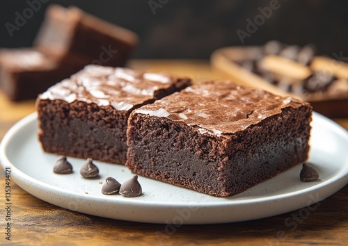 Chocolate Brownie Dessert Brownies on Ceramic Plate Food Illustration