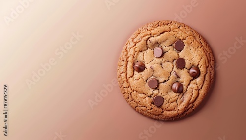 Chocolate Chip Cookie on Gradient Background, Copy Space