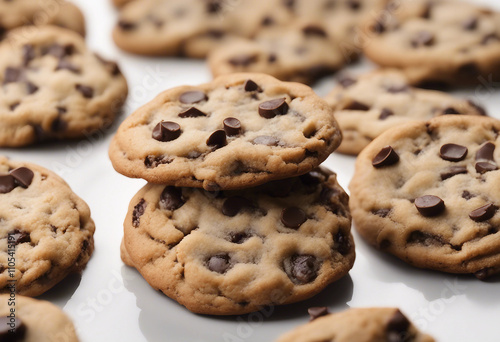Chocolate Chip Cookies Arrangement Isolated on White Transparent Background Element
