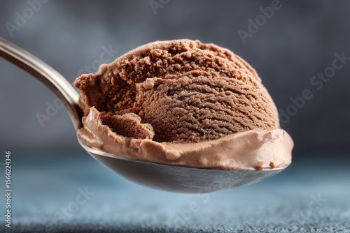 Chocolate ice cream scoop looks delicious and tempting, ready to eat