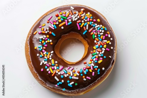 Chocolate Sprinkled Donut on White Background
