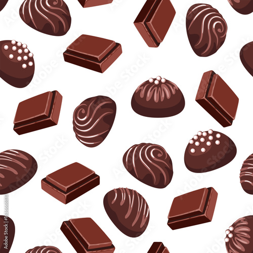 Chocolate sweets background. Seamless pattern with chocolate candies. Vector cartoon flat illustration.