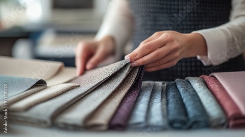 fabric, swatch, textile, material, pattern, colours, sample, designer, interior, design, decoration, palette, inspiration, selection, choose, hand, woman, style, texture, home, decor, decorative, choosing, pattern, colours, showroom, store, shop, soft, smooth, industry, production, apparel, clothing, fashion, dressmaker, tailoring, workshop, craft