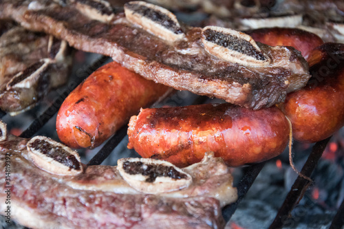 Chorizos y churrasco de ternera a la barbacoa