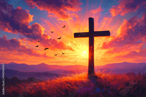 Christian Cross - Symbol of Christianity - Mourn or Funeral Background - Crucifixion of Jesus Christ