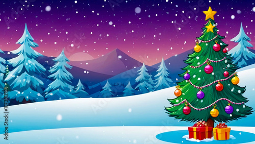 christmas tree, tree, nature, dark, snow, winter, illustration, decoration, decorate, planet, landscape, christmas, christmas, wallpaper, beautiful, digital artwork, ai, graphic, background, anime, design, high-quality, thumbnail, holiday, snowflake, vector, celebration, decoration, star, season, cold, card, scene, december, forest, new year, fir, greeting