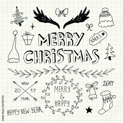 2017, art, bauble, bell, black, bow, children, christmas, claus, clip, december, decoration, decorative, doodle, drawing, drawn, element, frame, garland, gift, greeting, hand, hat, holiday, horn, illustration, ink, laurel, letter, merry, new, ornamental, party, pen, crayons, reindeer, ribbon, santa, vignetting, sketchy, sock, star, symbol, tree, winter, wish, chaplet, christmas, year