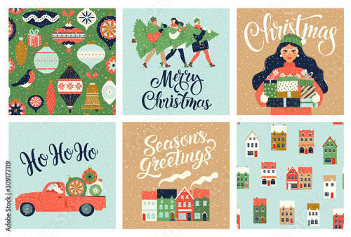 Christmas and New Year Template Set for Greeting Scrapbooking, Congratulations, Invitations, Tags, Stickers, Postcards. Christmas Posters set. Vector illustration.