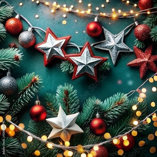 Christmas background with 3D abstract Christmas decorations.