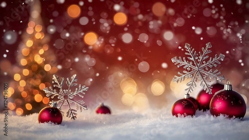 christmas, ball, decoration, holiday, christmas, snow, winter, celebration, card, tree, ornament, year, new, merry, season, bauble, snowflake, new year, red, tree branch, fir, light, december, gold, silver