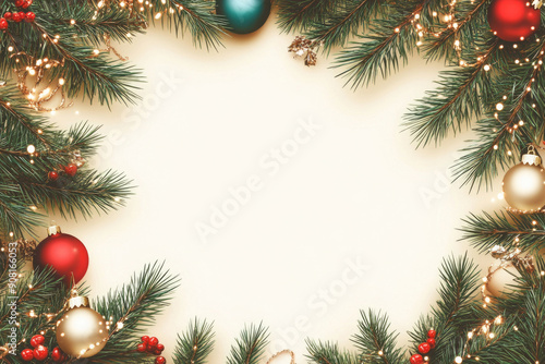 Christmas banner with pine branches and empty space for text.