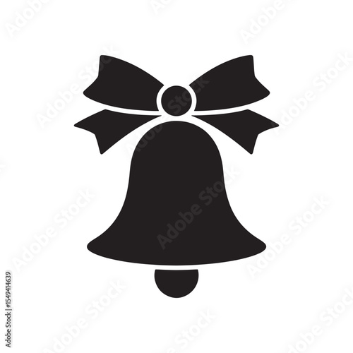 Christmas bell icon with festive ribbon bow silhouette holiday decoration graphic isolated on white background.
