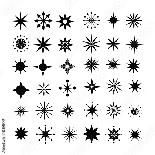 Christmas Black Starburst Icons Collection – Festive Silhouettes for Seasonal Designs