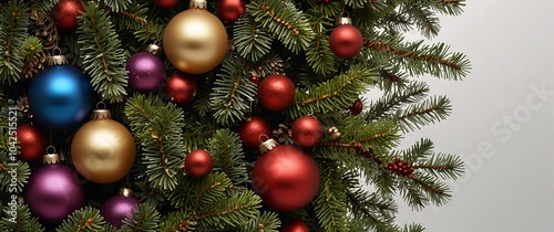 Christmas Branches Border with Christmas Decorations isolated against a clean white background, showcasing its transparent design and elegant shape