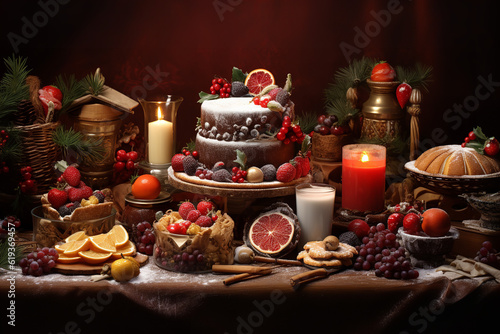 christmas, food, decoration, candle, holiday, table, christmas, celebration, cake, sweet, dessert, cookie, baked, fruit, glasses, drink, winter, breakfast, hot drink, delicious, cup, wine, aromatic, cinnamon, cookie