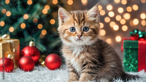 background, christmas, cat, new year, kitten, portrait, persian, pretty, animal, white, red, domestic, pet, felino, funny, young, hat, santa, colours, holiday, mammal, viewing, small, cute, eye, happy, breed, nature, relax, cheerful, sleeping, grey, fashion, celebration, winter, comfort, cosy, concept, sweet, soft, fluffy, snow, snowflake, season, christmas, ball, bokeh