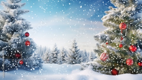 Christmas celebration concept,Winter panoramic background ,covered spruce branches, Christmas tree