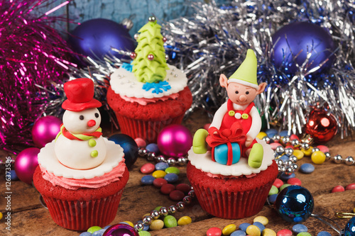 christmas, cupcake, christmas, holiday, new year, food, decoration, desert, ball, coloured, sweet, candy, christmas tree, santa, elf, snowman, celebration, present, gift, colourful, decorative, wooden, tinsel