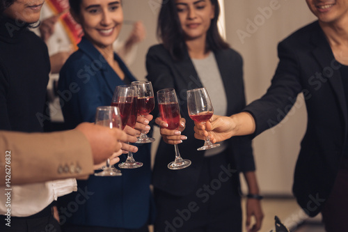 Christmas Day Businessman and business partners are successful, fun and happy at a group celebration party.