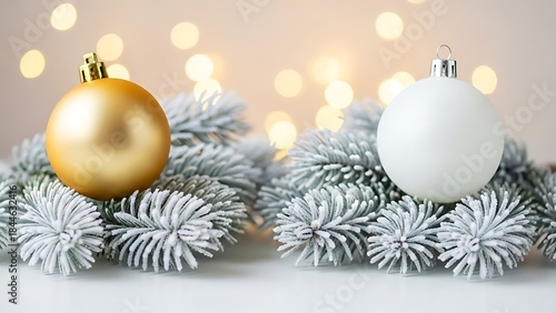 Christmas decoration with golden and white ornaments