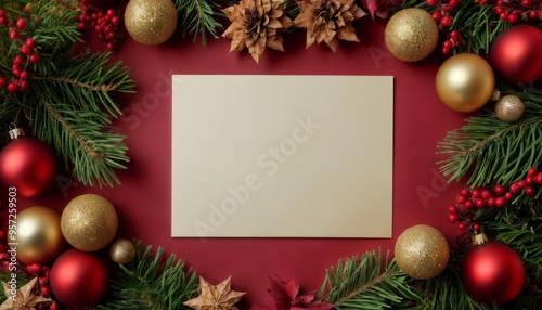 christmas, decoration, frame, holiday, blank, abstract, space, background, celebrate, celebration, center, december, ball, decor, decorative, design, eve, fairy, festive, fir, garland, greeting, happy, gift, merry, new, ornament, present, red, season, symbol, tale, toy, wallpaper, winter, christmas, year, branch, pine, fire, tree, yellow, gold, letter, paper