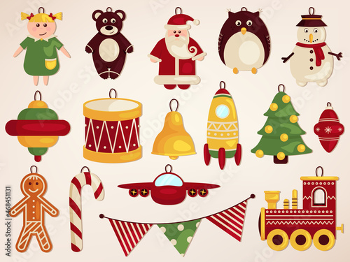 Christmas decorative toys. Big Christmas collection in vintage style with traditional Christmas and New Year elements. Vector illustration EPS10