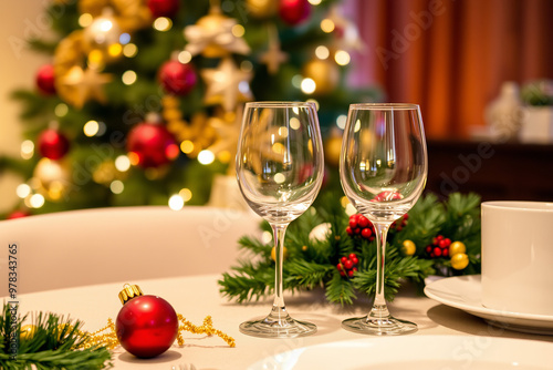 christmas, table setting, festive, wine glass, dinner, candlelight, decoration, christmas tree, warm light, christmas ornament, glasses, wine, celebration, holiday, decoration, party, new, year, table, tree, christmas, gold, new year, beverage, celebrate, eve, goggles, gift, 2, ai