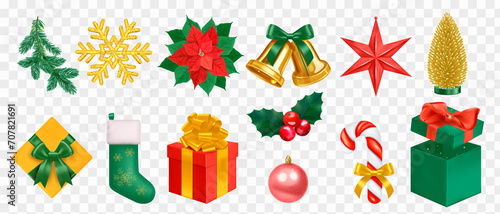 concept, decoration, holiday, green, red, happy, celebration, greeting, season, gold, festive, present, seasonal, december, decor, ornament, happiness, merry, christmas, christmas, design, background, composition, vector, graphic, realistic, set, collection, isolated, snowflake, christmas flower, bell, star, christmas tree, candy cane, christmas bauble, stocking