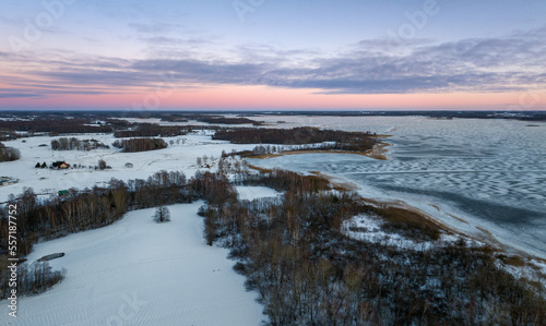Christmas Eve, sunset at Lake Siver. Latvia & Latgale.
