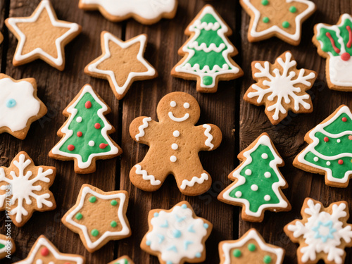 christmas, gingerbread, cookie, food, sweet, decoration, holiday, christmas, cookie, baked, star, dessert, homemade, biscuit, ginger, tree, winter, icing, shape, brown, traditional, delicious