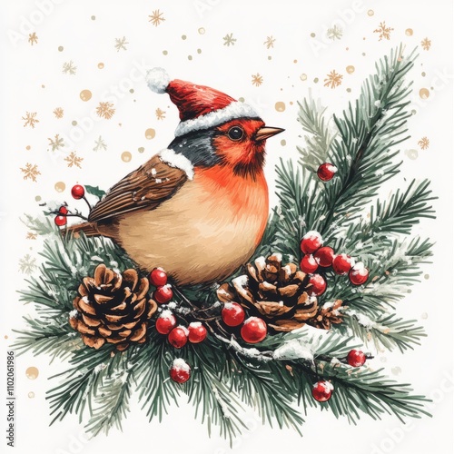 christmas, bird, robin, tree, winter, decoration, nature, tree branch, wildlife, holiday, fir, snow, ball, christmas, garden, ornament, animal, season, celebration, wild, red, beak, isolated, new, pine