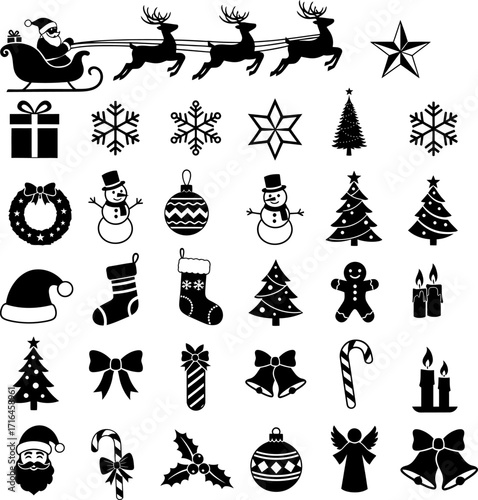 christmas, set, vector, silhouette, icon, santa, hat, cake, clip art, festivity, star, drawing, graphic, ornament, reindeer, snowflake, vignetting, art, bow, element, festive, illustration, isolated, present, seasonal, shape, stocking, bell, celebration, decoration, design, gift, holiday, icon, new year, outline, symbol, template, background, season, tree, winter, cervid