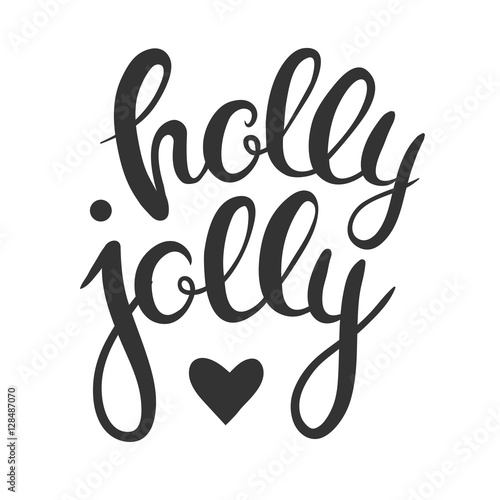 Christmas lettering isolated on white. Holly Jolly. Hand drawn vector calligraphy with seasonal greetings.