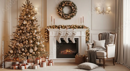 Christmas Living Room with a Christmas Decor in a Cozy Setting