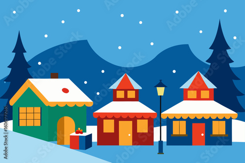 christmas, market, stall, snowy, village, square, festive, shopping, scene, holiday, light, decoration, people, celebration, cheer, event, gift, tree, snow, joy, shop, night, glow, winter, crowd, building, home, fun, food, cold, magic, seller, season