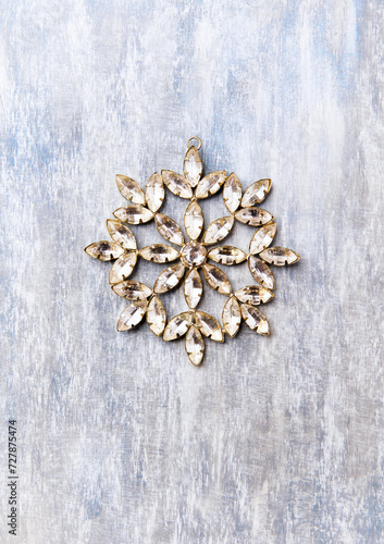 Christmas ornament on bright wooden background. Soft focus. Top view. Copy space.