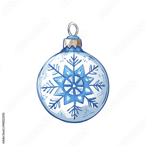 Christmas ornament with large blue snowflake design, winter mood, isolated on white background, copy space