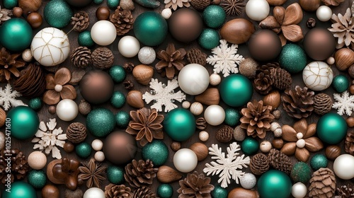 christmas, ornament, pine cone, arrange, texture, surface, winter, festive, decoration, holiday, classic, natural, spirit, memory, snowflake, party, warmth, material, elegance, beauty, collectable, seasonal, home, tradition, cosy, theme, shiny, joyful, hue, design, style, art, ambience, high-coloured, artificial, charme, display, scene, pattern, visual, photo, embellishment, chaplet, atmosphere, light, rustic, hand-made, colourful, table