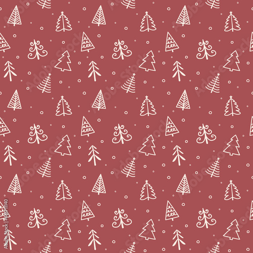 Christmas pattern with hand drawn trees. Xmas wrapping paper concept. Vector