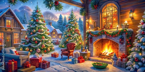 christmas, printable, decor, festive, snow, reindeer, typography, print, digital, photorealistic, detailed, composition, christmas spirit, light, ornament, gift, wrapping, dinner, morning, tree, stocking, warm, elegant, image, decorative, decoration