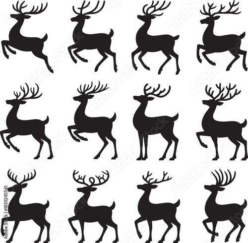 christmas, holiday, reindeer, silhouette, vector, icon, festive, winter, decoration, design, graphic, isolated, animal, antler, cervid, season, background, white, grid, pattern, illustration, simple, minimal, traditional, celebration, ornament, nature, wildlife, symbol, abstract, art, black, outline, shape, snow, christmas, cute, elegant, classic, modern, clean, decorative, template, set, collection