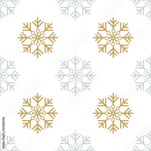 Christmas seamless pattern. Gold and silver snowflakes on a white background. For packaging, textiles or wallpaper.