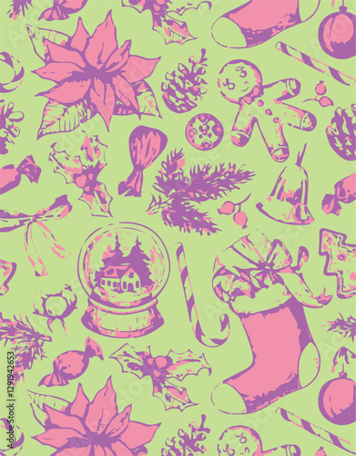 Christmas seamless patterns set, winter wallpapers, festive new year wrapping paper design