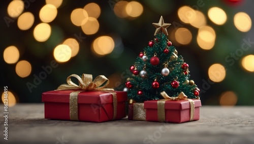 Christmas shopping concept miniature christmas tree and gift boxes.
