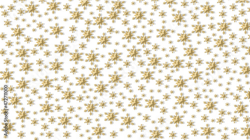christmas sky: snowflakes, light golden yellow, 3d effect with shadow on white background.