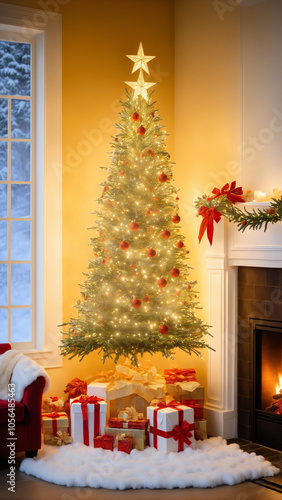 christmas, tree, holiday, decoration, christmas tree, christmas, gift, winter, season, fireplace, room, home, interior