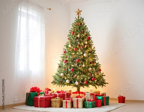 Christmas tree and gifts in the modern decorated living room with day light decorated room Christmas celebration day